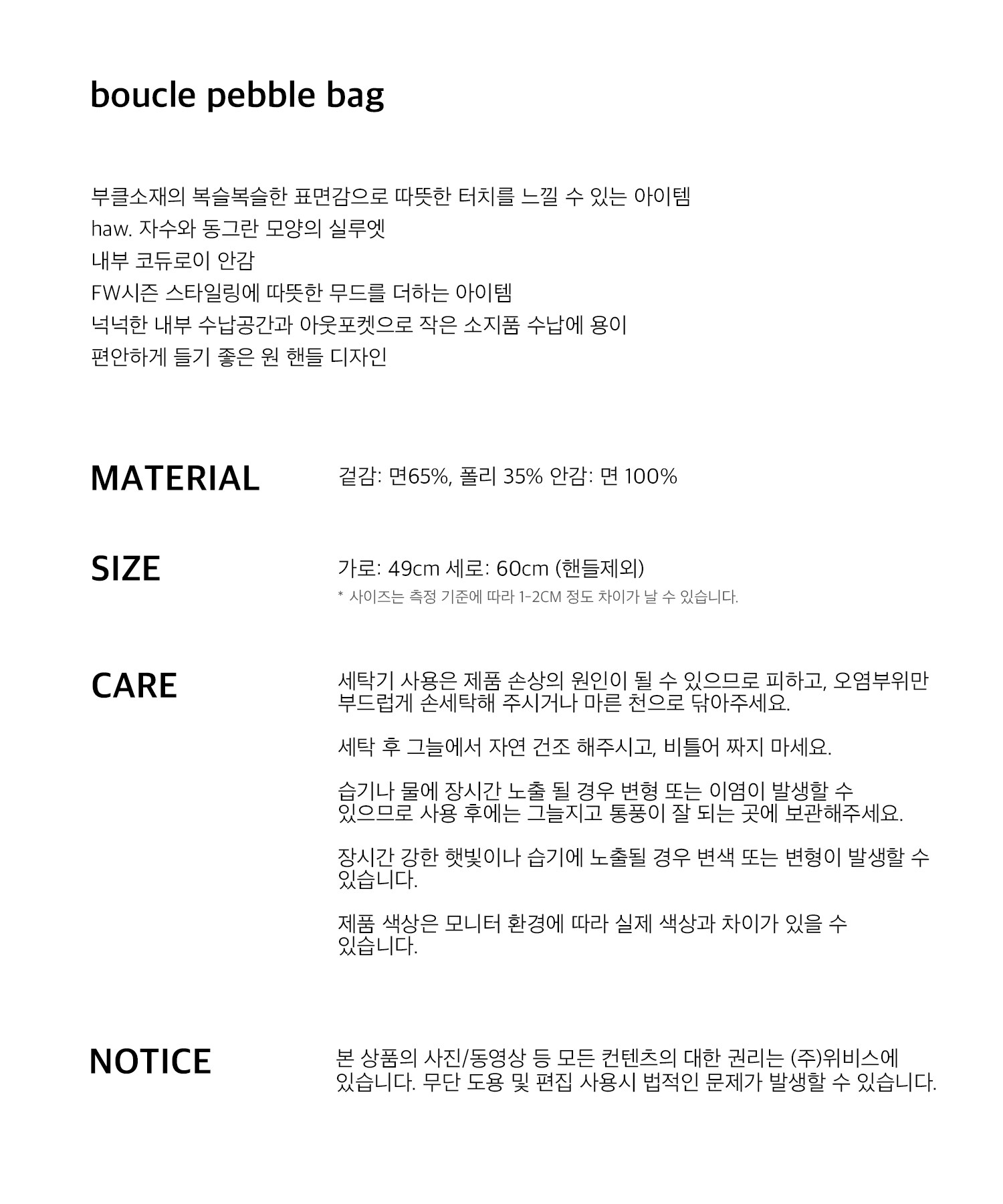 ・부클소재의 복슬복슬한 표면감으로 따뜻한 터치를 느낄 수 있는 아이템