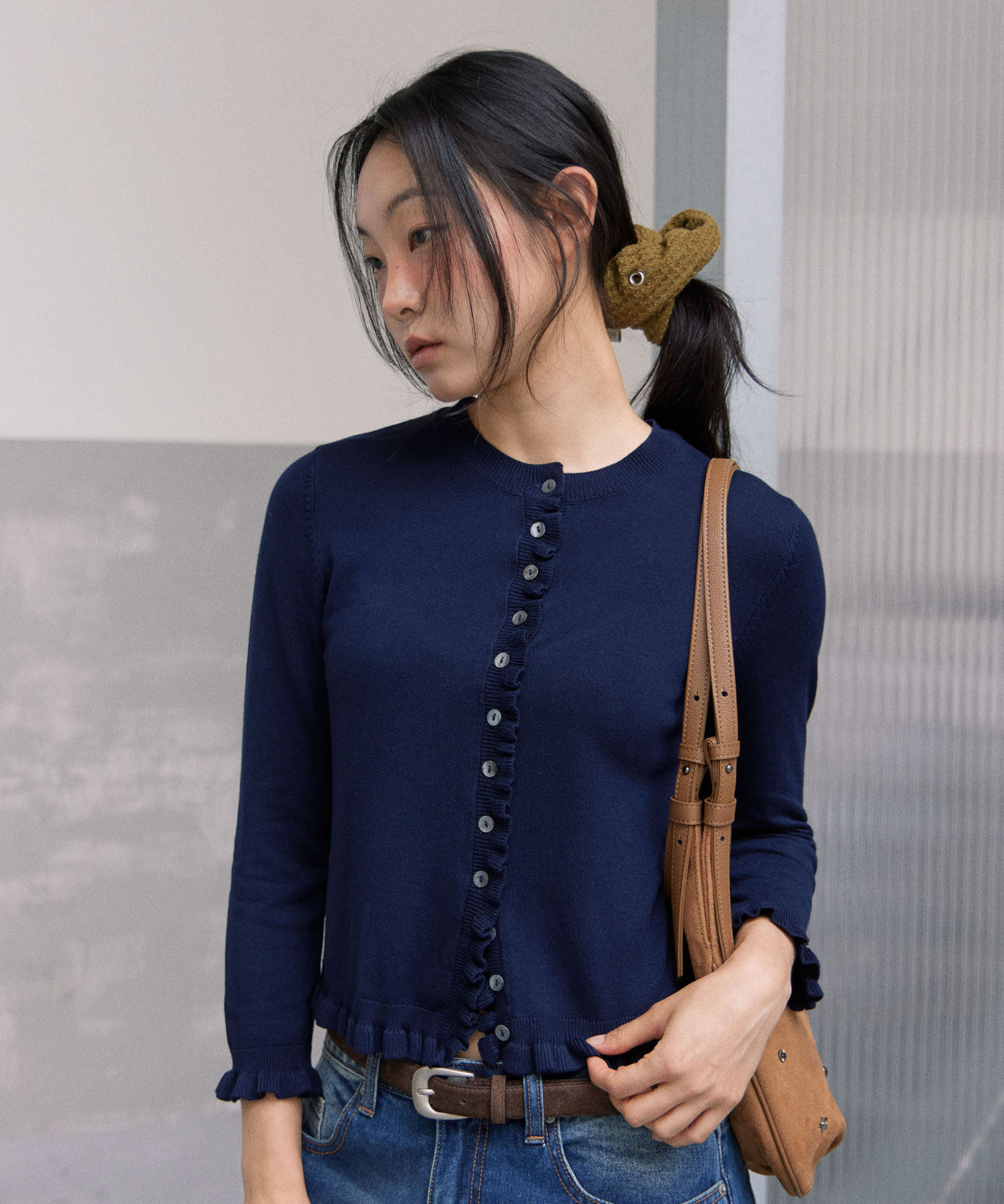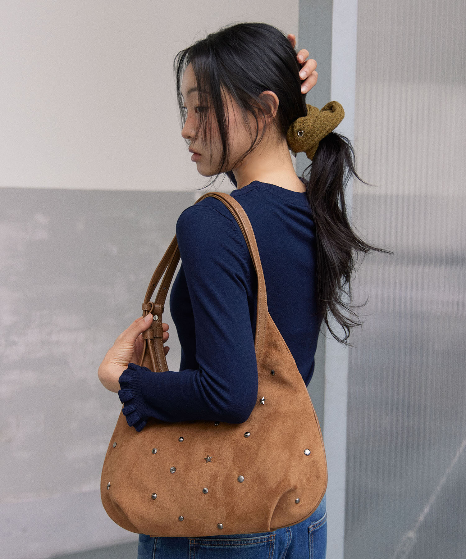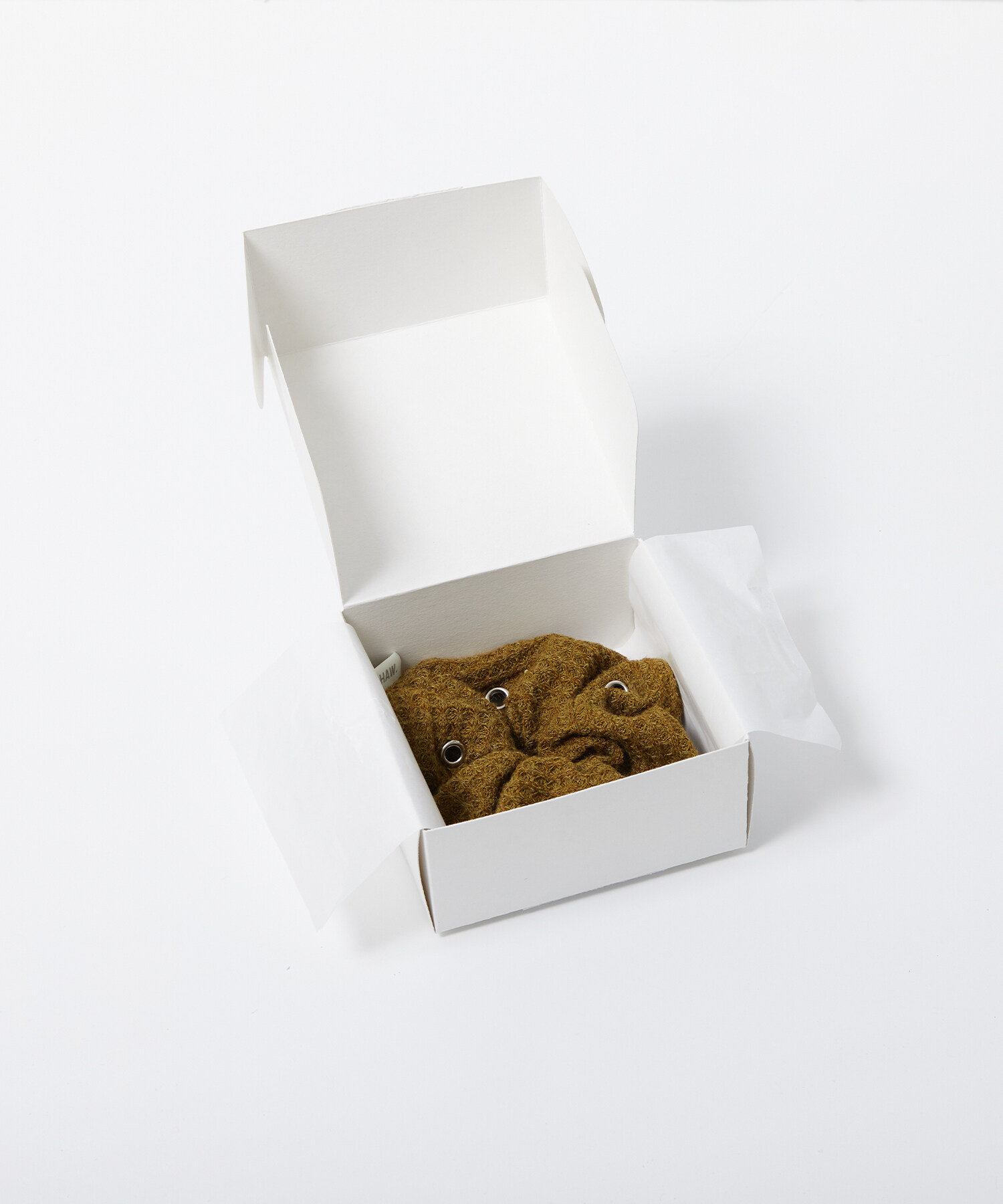 ・ 니트 소재 특유의 포근함에 아일렛 디테일을 더한 스크런치