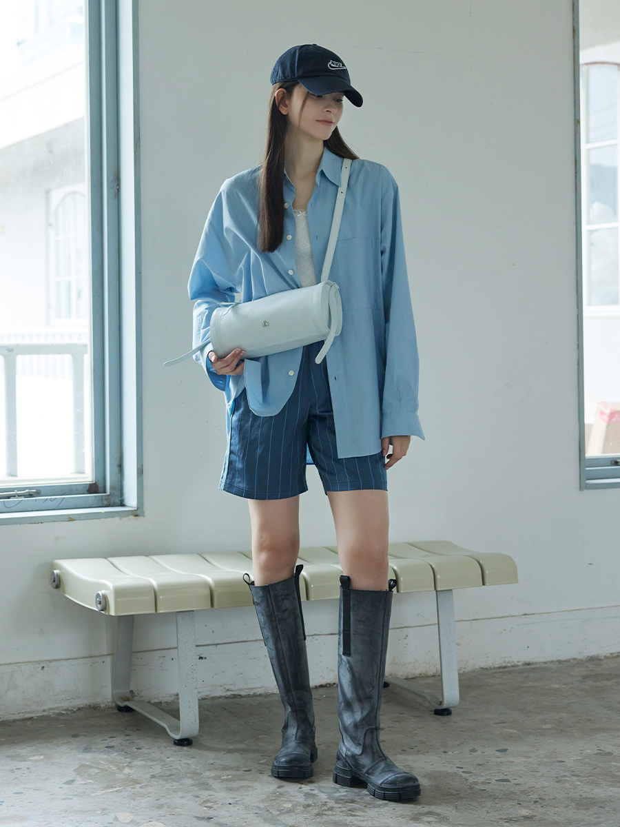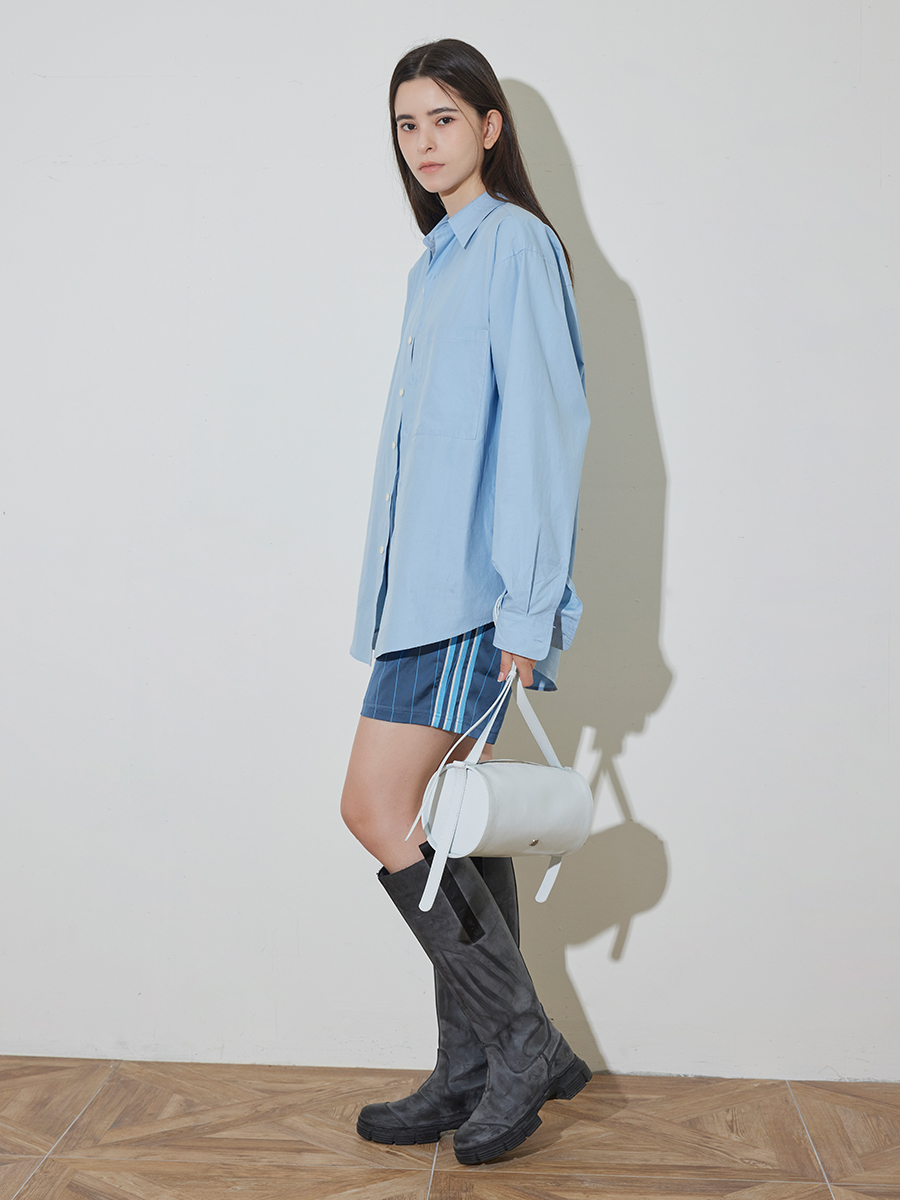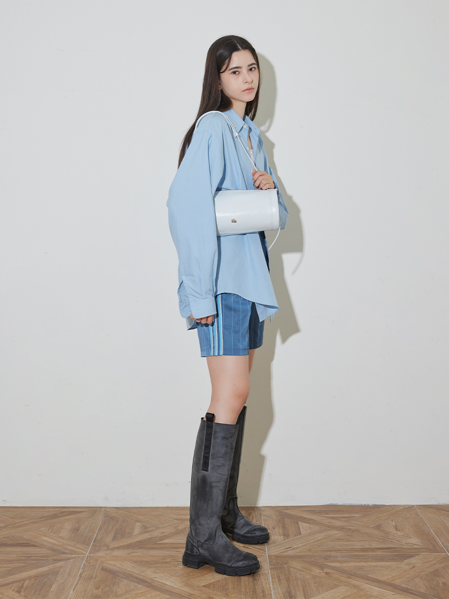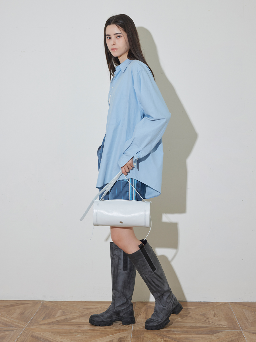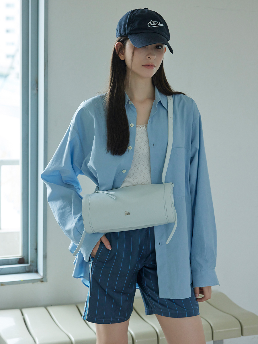 모던한 느낌과 트렌디함을 같이 가지고 있는 원통형의 가방입니다. 크랙이 들어간 가죽소재를 사용해 부드러운 터치감을 느낄 수 있는 아이템입니다. 길게 늘어지는 장식 끈이 포인트가 되며 빈티지한 룩과 모던한 룩 다양한 착장에 매칭하기 좋은 가방입니다.