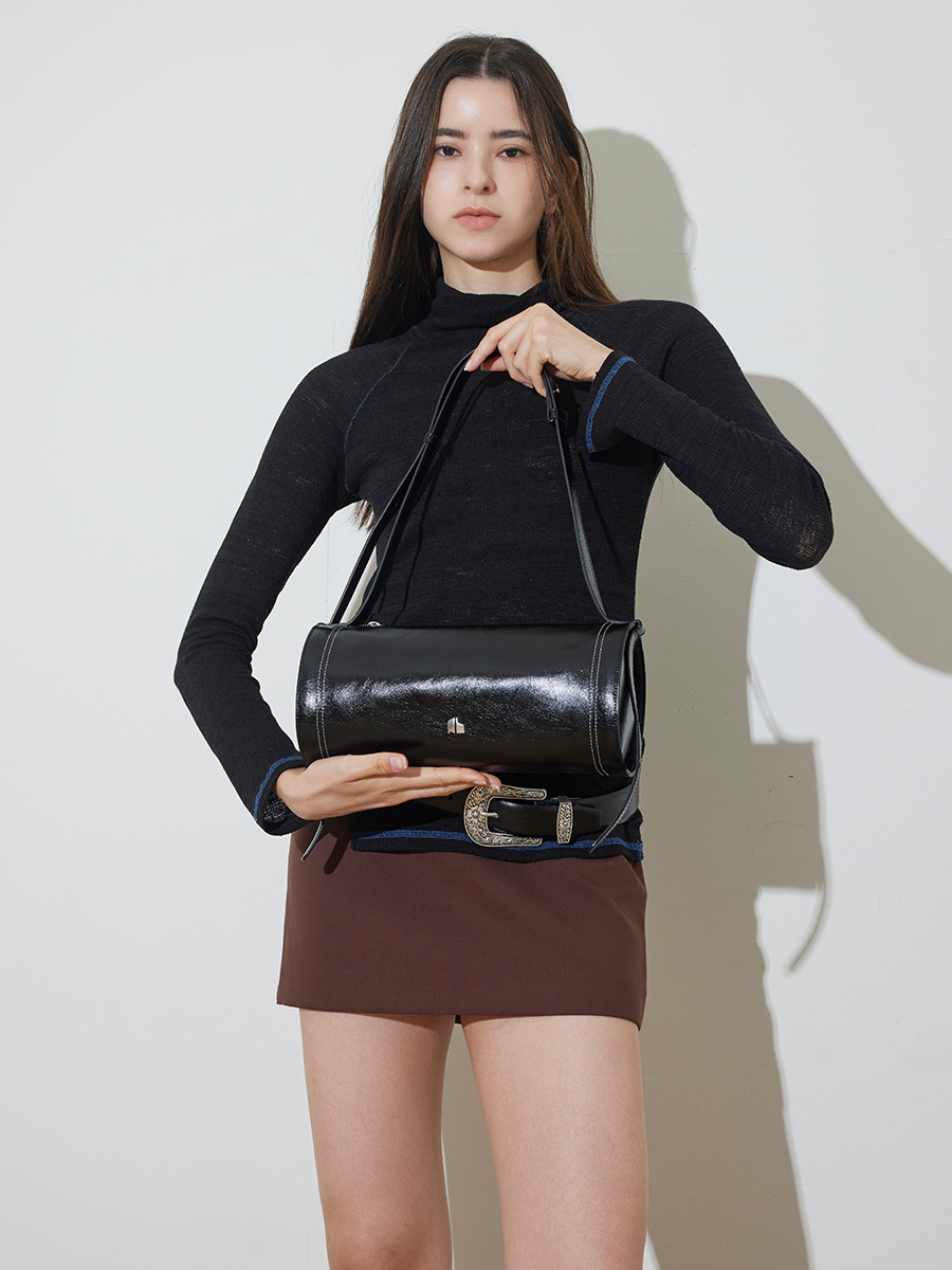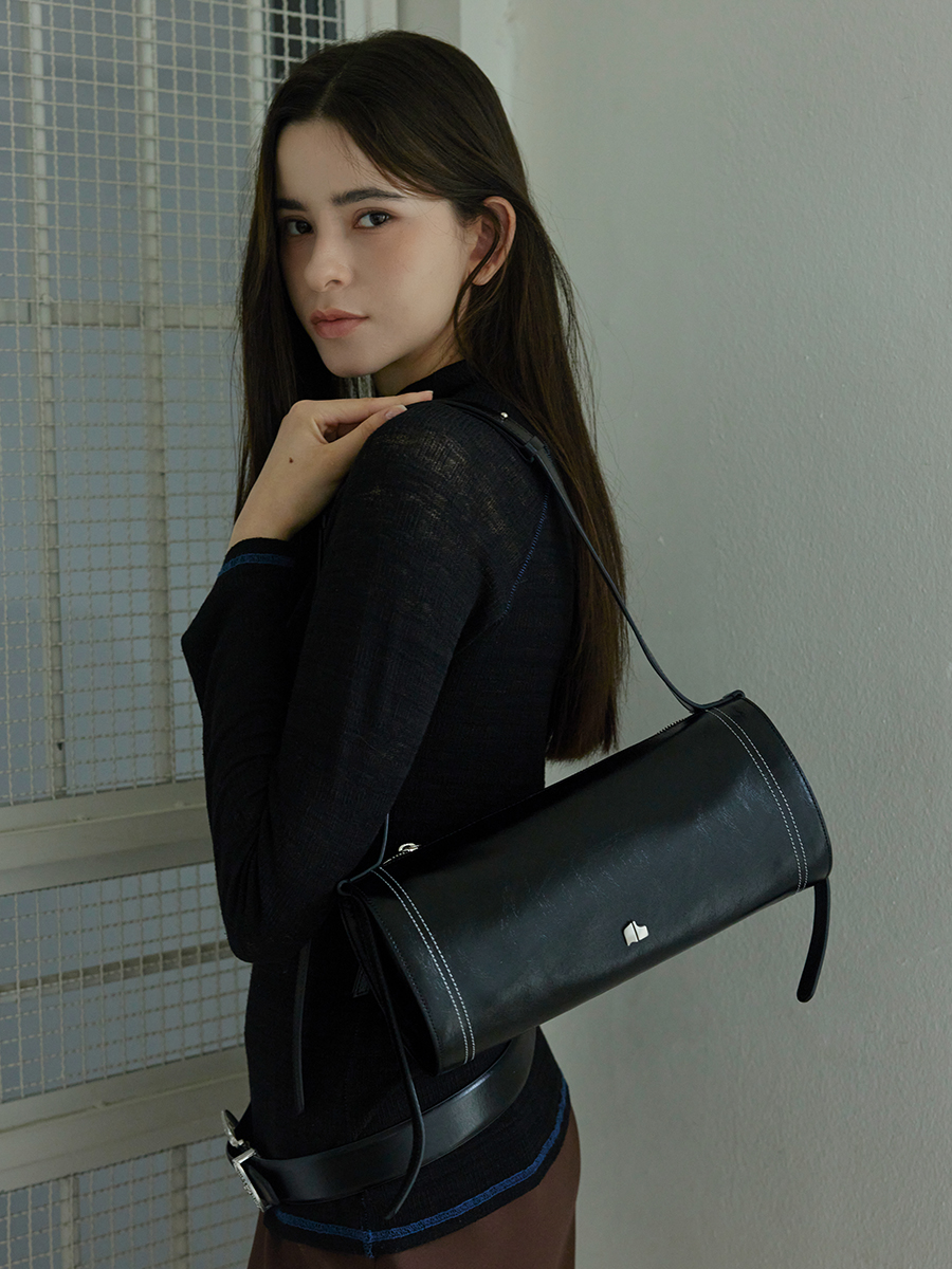 모던한 느낌과 트렌디함을 같이 가지고 있는 원통형의 가방입니다. 크랙이 들어간 가죽소재를 사용해 부드러운 터치감을 느낄 수 있는 아이템입니다. 길게 늘어지는 장식 끈이 포인트가 되며 빈티지한 룩과 모던한 룩 다양한 착장에 매칭하기 좋은 가방입니다.